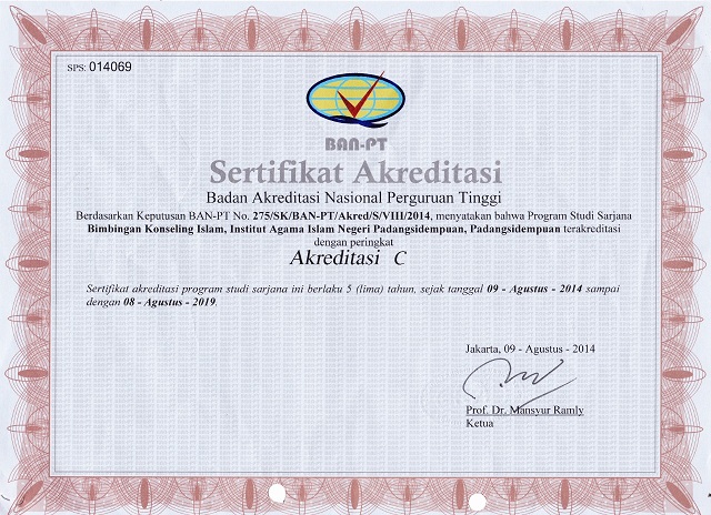 Lembaga: BAN PT | No SK: 275/SK/BAN-PT/Akred/S/VIII/2014 | Tahun: 2014