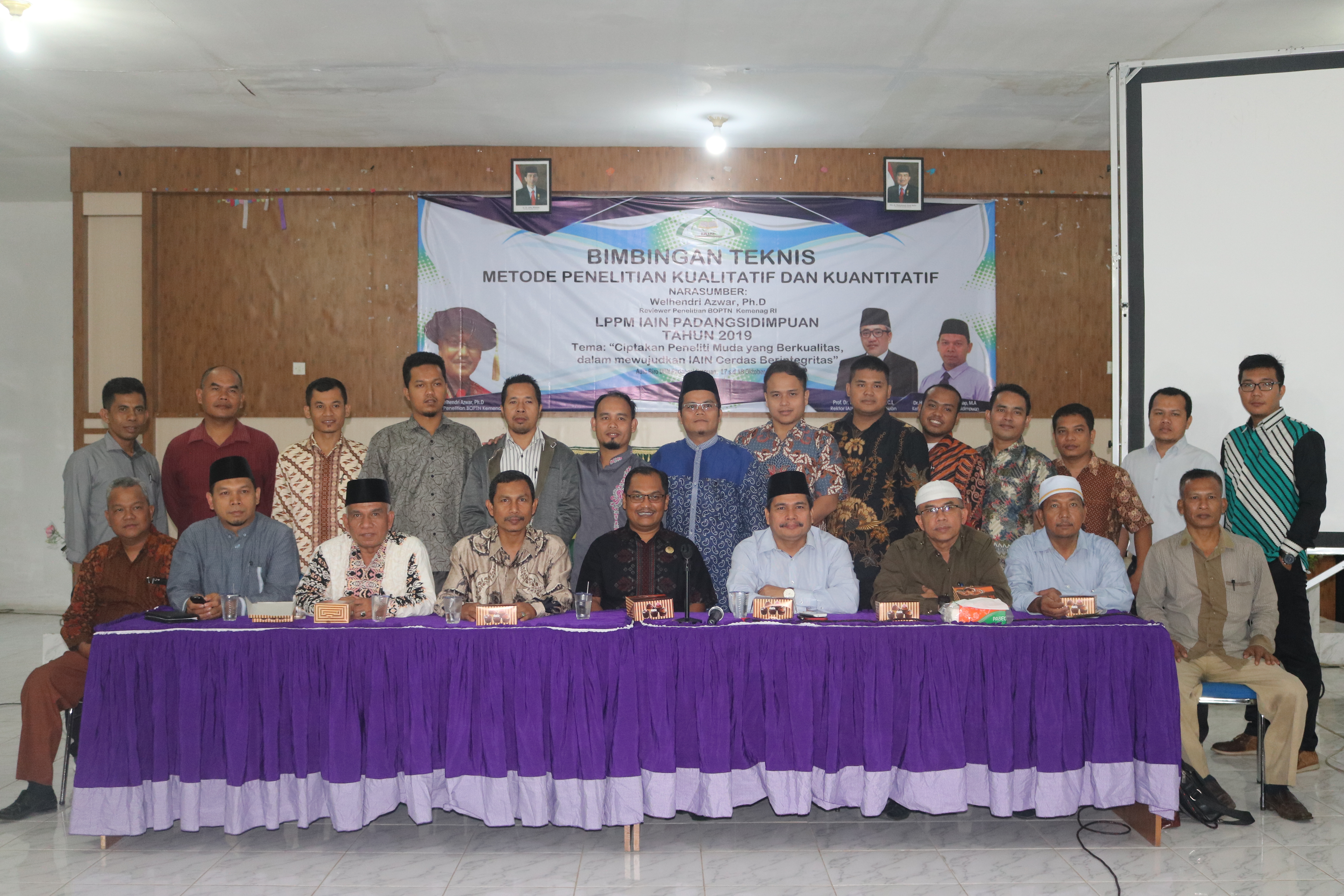 Jum’at (18/10/2019). Dalam rangka menciptakan peneliti handal, Lembaga Penelitian dan Pengabdian kepada Masyarakat (LPPM) IAIN Padangsidimpuan menggelar Bimbingan Teknis (Bimtek) bertemakan “Ciptakan Peneliti Muda Yang Berkualitas Dalam Mewujudkan IAIN Padangsidimpuan Cerdas Berintegritas,” di Aula Rektorat IAIN Padangsidimpuan, 17-18 Oktober 2019.