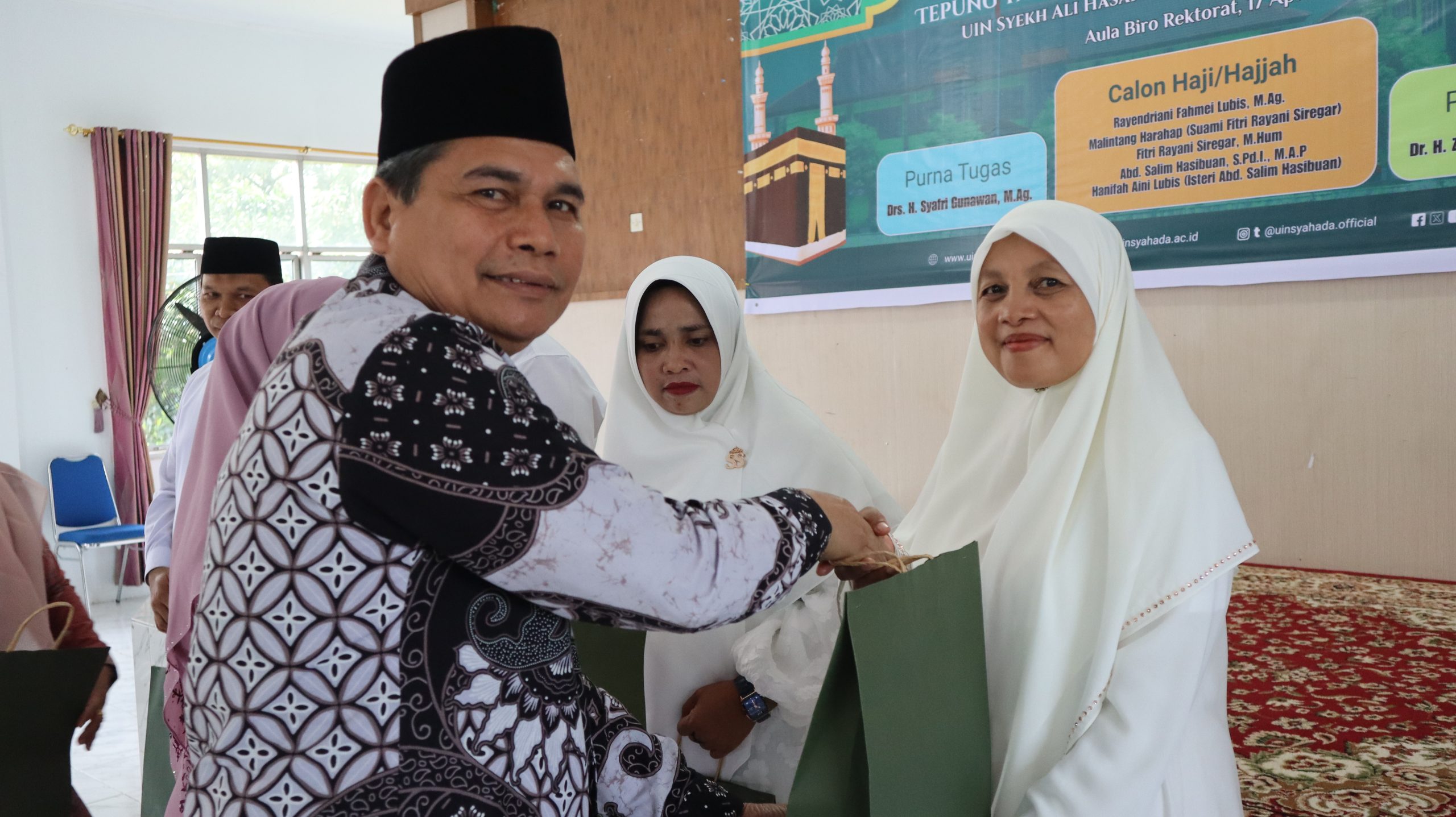 Sambutan resmi disampaikan oleh Rektor UIN Syahada Padangsidimpuan, Prof. Dr. H. Muhammad Darwis Dasopang, M.Ag., yang menegaskan pentingnya momen kebersamaan ini sebagai wujud ukhuwah Islamiyah dan sinergi antar elemen kampus. Ia mendoakan para jemaah menjadi haji yang mabrur, serta bagi dosen purna tugas agar selalu diberi kesehatan dan keberkahan.