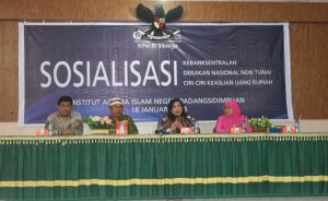 Kegiatan sosialisasi ini dilaksanakan di aula IAIN Padangsidimpuan yang dihadiri oleh Perwakilan Bank Indonesia Sibolga, Unsur Pimpinan IAIN Padangsidimpuan serta mahasiswa/mahasiswi. Sosialisasi berlangsung selama seharian ini berjalan sukses dan lancar. Dalam pantauan Humas IAIN Padangsidimpuan, mahasiswa begitu antusias mengikuti kegiatan ini. Apalagi dengan kehadiran para narasumber yang profesional di bidang keuangan dan keBank Sentralan. (Humas/Trg)