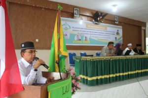 Dok.Humas: Drs.H.Samsuddin,M.Ag (Ketua LPM / Ketua Panitia) melaporkan jadwal dan tujuan dari kegiatan pendampingan Akreditasi di Aula.