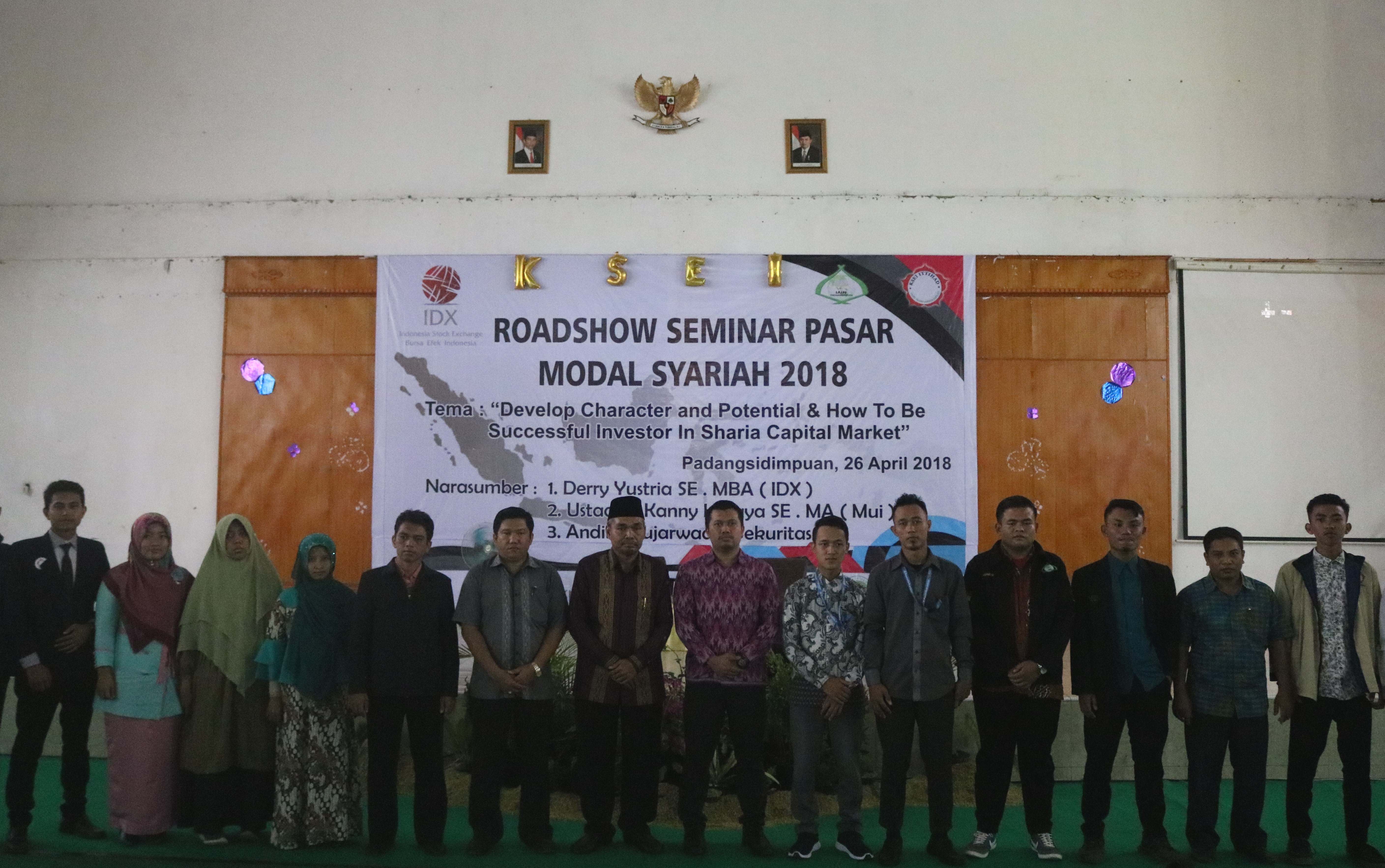 Jum’at (27/04/2018); Kelompok Studi Ekonomi Islam Ittihad IAIN Padangsidimpuan menggelar Roadshow Seminar Pasar Modal Syari’ah di auditorium IAIN Padangsidimpuan, (Kamis, 26/04/2018). Kegiatan yang dihadiri oleh hampir 500 orang peserta ini, mengusung thema “Develop Character and Potential & How To Be Successful Investor In Sharia Capital Market”.