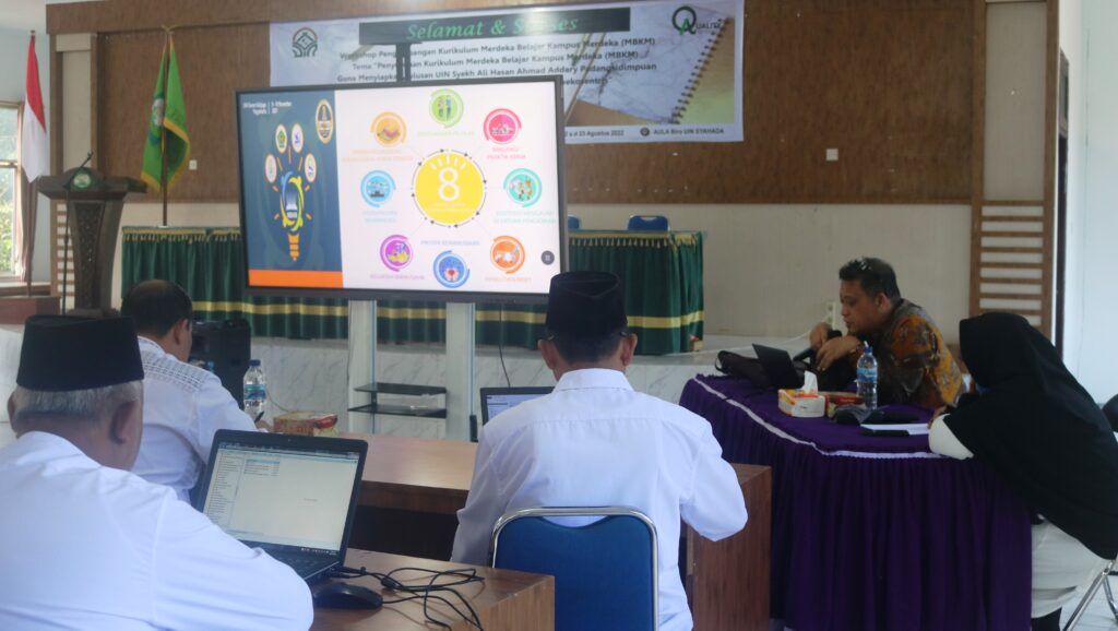 Senin (22/08/2022); Lembaga Penjaminan Mutu (LPM) Universitas Islam Negeri Syekh Ali Hasan Ahmad Addary Padangsidimpuan menggelar Workshop Pengembangan Kurikulum Merdeka Belajar Kampus Merdeka (MBKM). Workshop yang dibuka oleh Rektor, Dr. H. Muhammad Darwis Dasopang, M.Ag yang diwakili oleh Dr. Erawadi, M.Ag sebagai Wakil Rektor bidang Akademik dan Pengembangan Lembaga ini digelar di Aula Rektorat UIN Syekh Ali Hasan Ahmad Addary Padangsidimpuan, Senin – Kamis, 22-25 Agustus 2022.