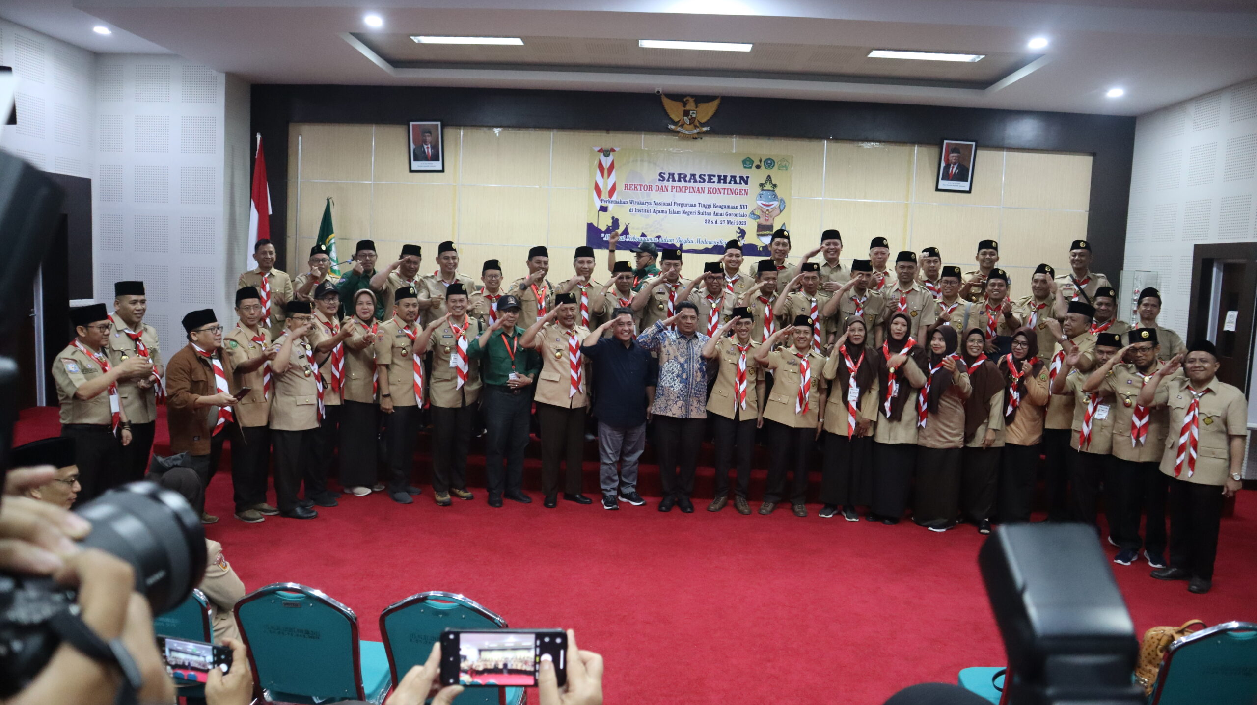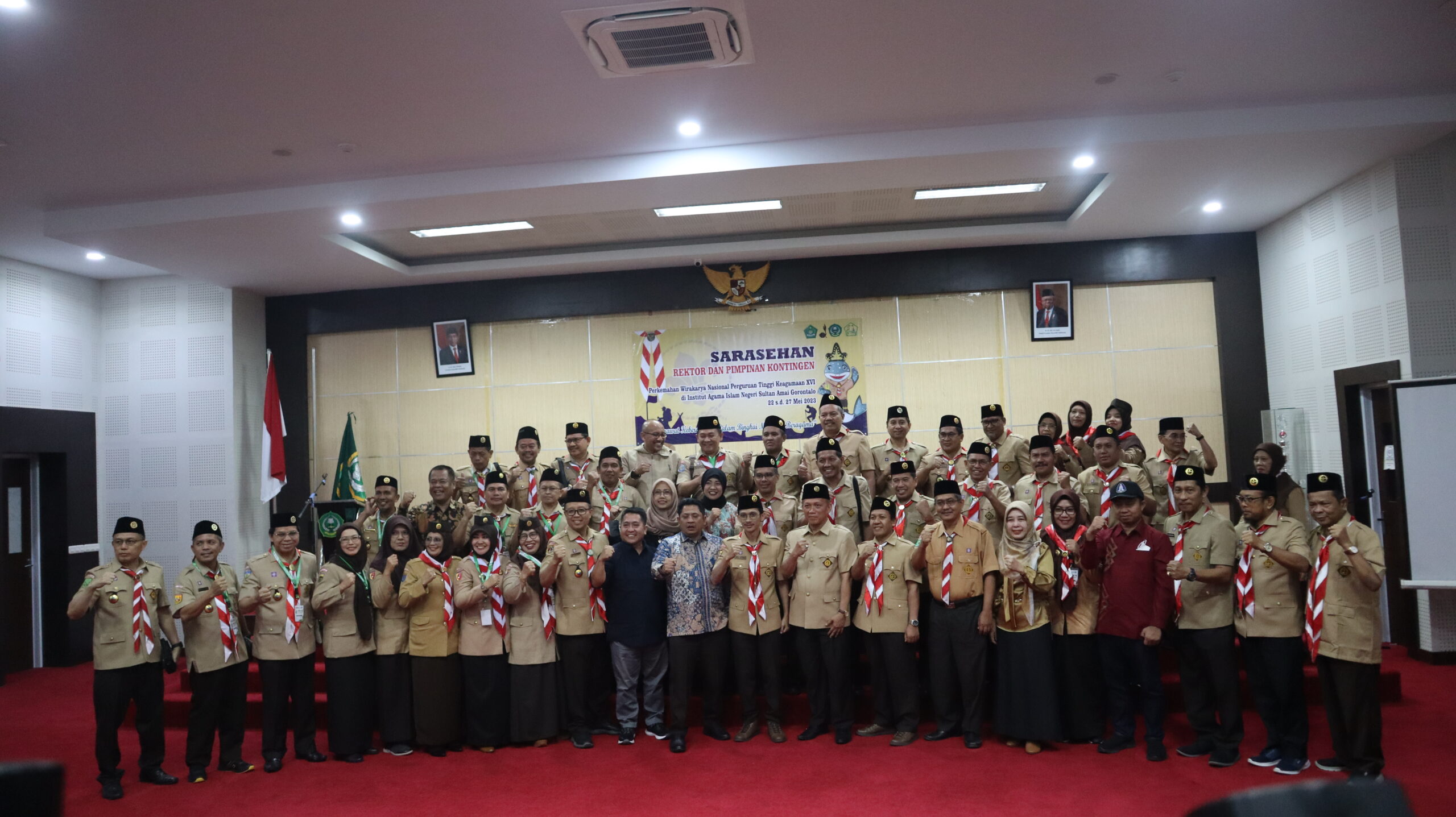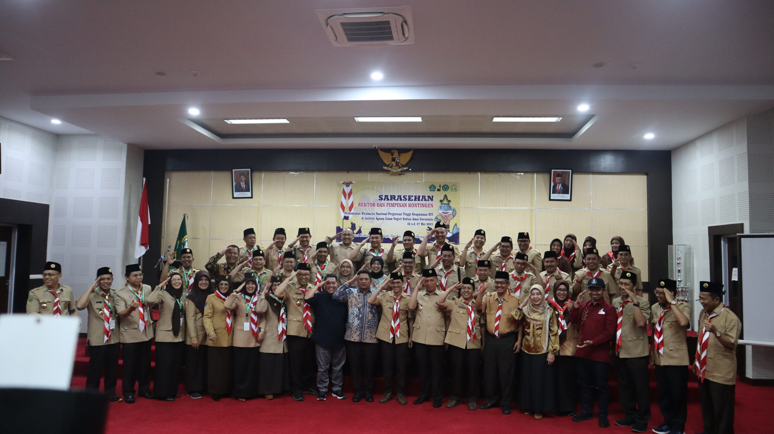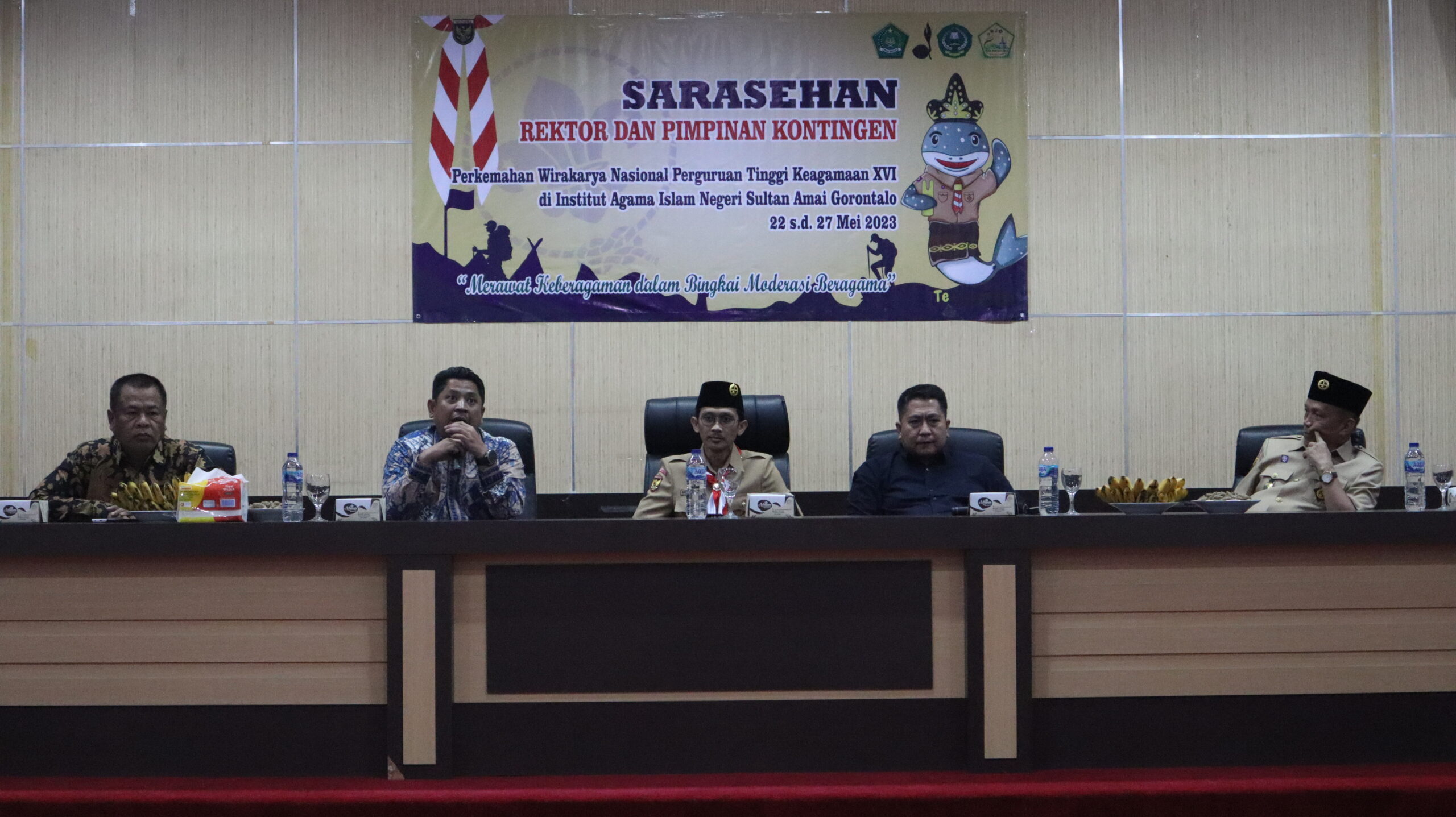 Senin (22/05/2023, Gorontalo – Rektor Muhammad Darwis Dasopang dan Pimpinan Kontingen Ikhwanuddin  UIN syekh Ali Hasan Ahmad Addary Padangsidimpuan mengikuti sarasehan yang digelar sebagai bagian dari rangkaian acara Perkemahan Wirakarya Nasional Perguruan Tinggi Keagamaan XVI. Acara tersebut dihadiri oleh para rektor dan pimpinan perguruan tinggi keagamaan dari seluruh Indonesia.