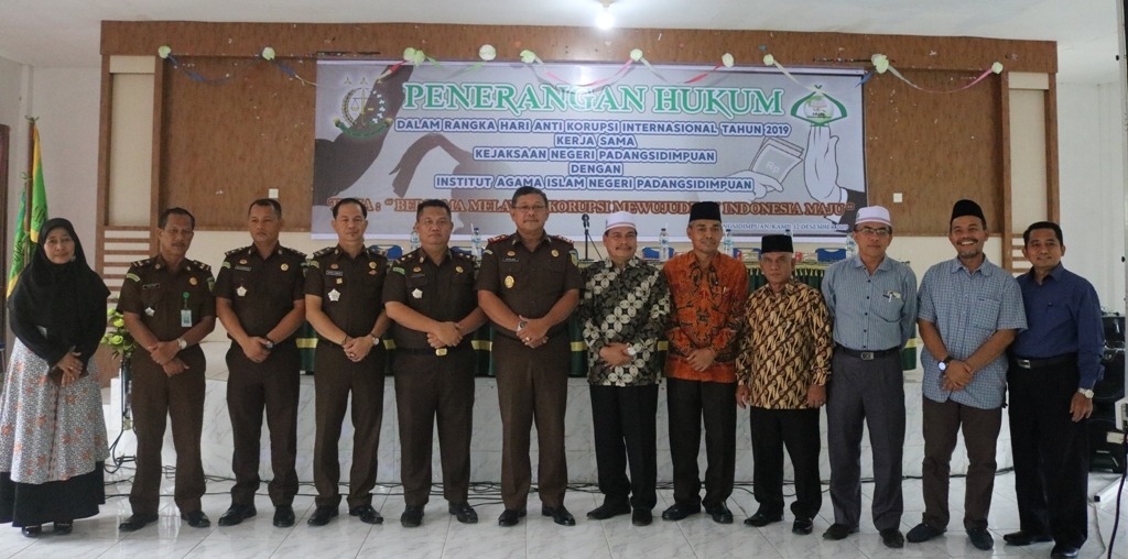 Kamis (12/12/2019). Dalam rangka memperingati Hari Anti Korupsi Internasional yang jatuh pada tanggal 9 Desember, Kejaksaan Negeri Kota Padangsidimpuan bekerjasama dengan IAIN Padangsidimpuan menggelar Seminar Penerangan Hukum, dengan thema “Bersama Melawan Korupsi, Mewujudkan Indonesia Maju”. Kegiatan yang dibuka secara resmi oleh Dr.H.Muhammad Darwis Dasopang,M.Ag (Wakil Rektor Bidang Akademik dan Pengembangan Lembaga) IAIN Padangsidimpuan ini juga dihadiri oleh unsur pimpinan Kejaksaan Negeri kota Padangsidimpuan, unsur pimpinan IAIN Padangsidimpuan serta mahasiswa IAIN Padangsidimpuan.