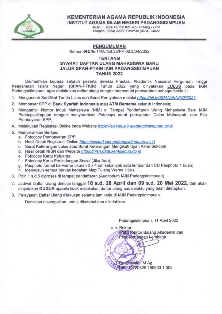 Persyaratan Daftar Ulang SPAN-PTKIN 2022