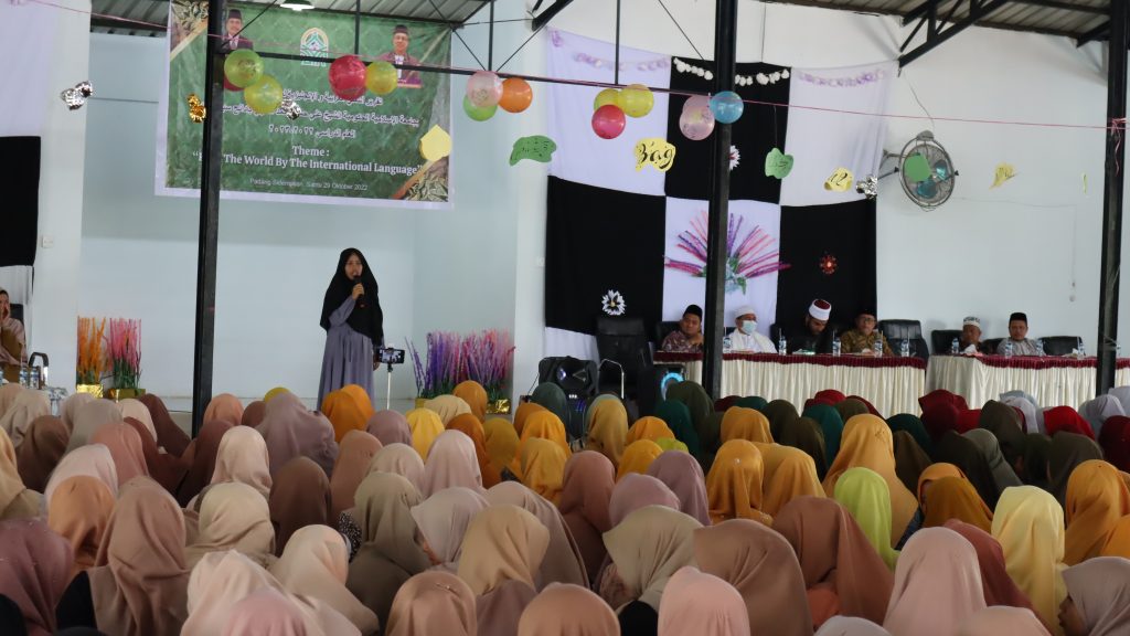 Sabtu (29/10/2022). Rektor Dr. Muhammad Darwis Dasopang, M.Ag secara resmi melaunching wajib menggunakan Bahasa Arab dan Inggris bagi mahasantri/ah di Ma’had Al-Jami’ah UIN Syek Ali Hasan Ahmad Addary Padangsidimpuan dengan tema: “Hold The World By Internasional Language”.