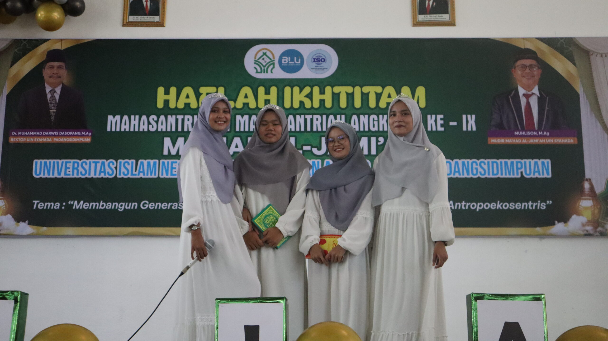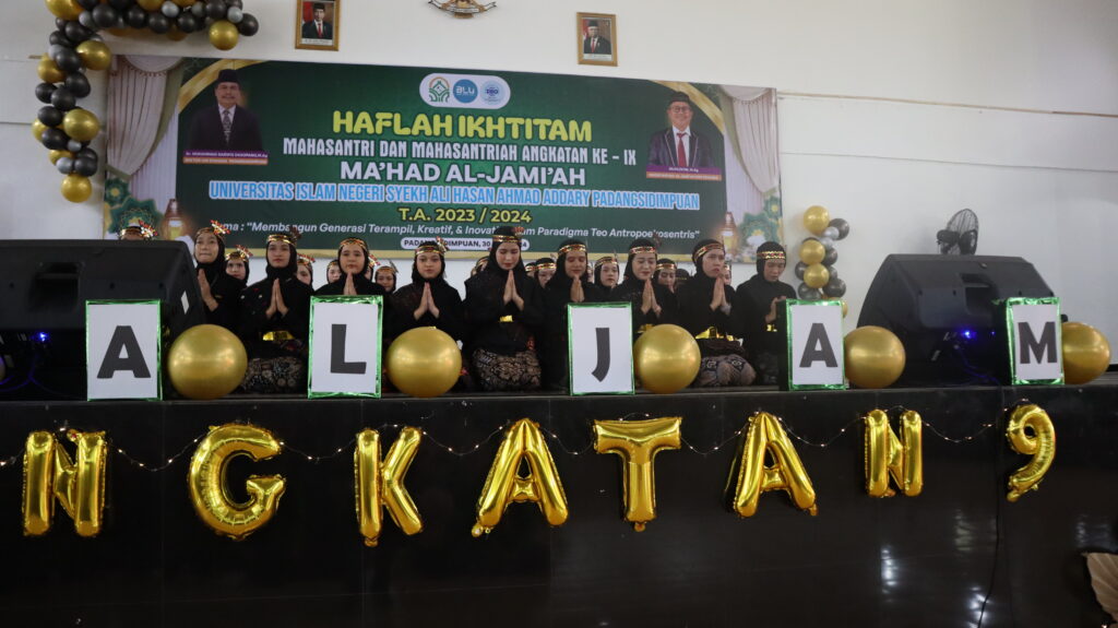 Humas UIN Syahada Padangsidimpuan, Ma’had Al-Jami’ah UIN Syahada Padangsidimpuan laksanakan acara Haflah Ikhtitam untuk mahasantri/mahasantriah UIN Syahada Padangsidimpuan angkatan tahun 2023 yang dibuka secara resmi oleh Rektor UIN Syahada Padangsidimpuan, Dr. H. Muhammad Darwis Dasopang, M.Ag., dan dihadiri oleh seluruh mahasantri/mahasantriah dan seluruh tamu undangan yang berhadir.