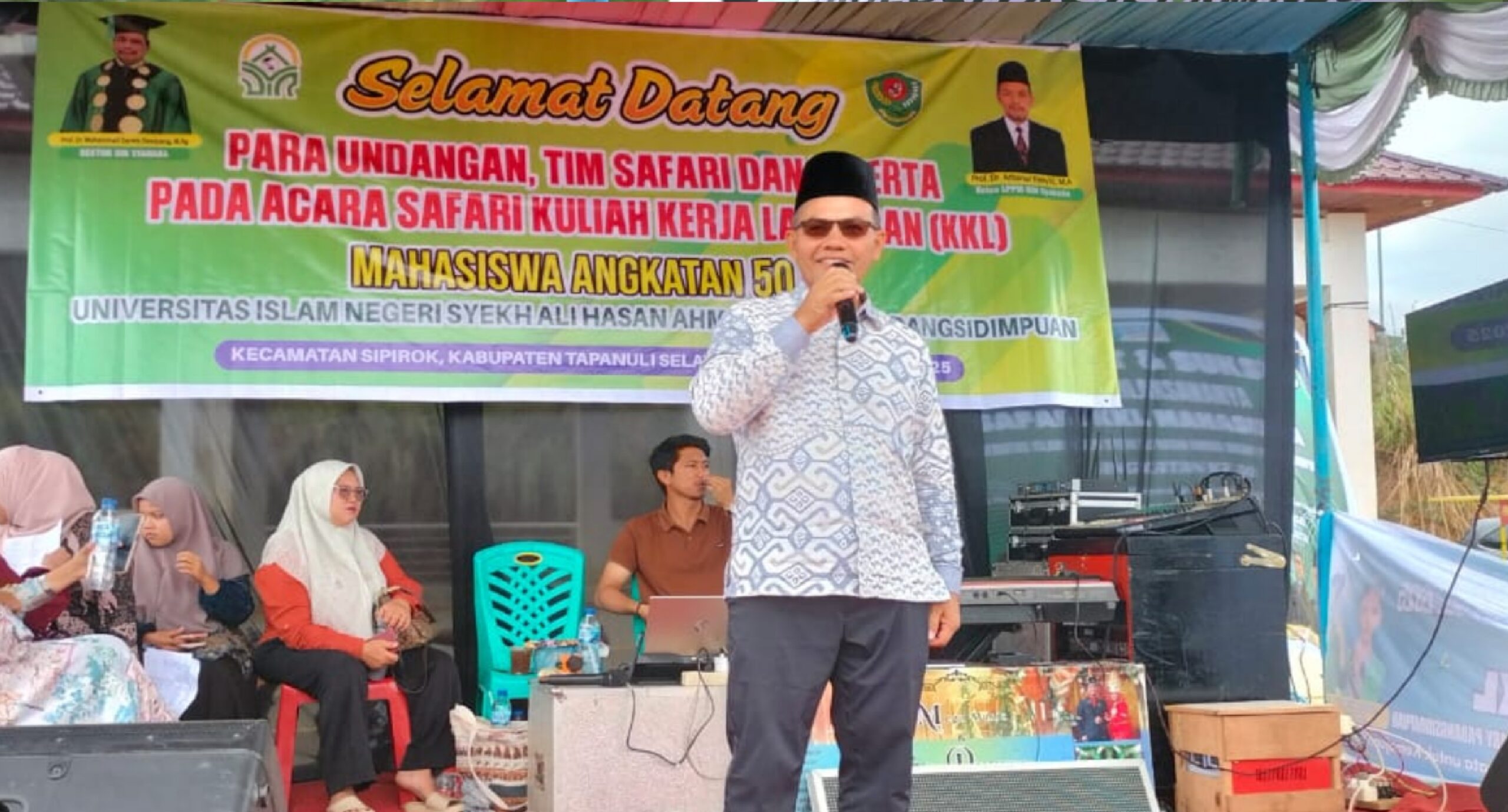 Tapanuli Selatan, 4 Agustus 2025 — Rektor Universitas Islam Negeri (UIN) Syekh Ali Hasan Ahmad Addary Padangsidimpuan, Prof. Dr. H. Muhammad Darwis Dasopang, M.Ag, menghadiri kegiatan Safari Kuliah Kerja Lapangan (KKL) Mahasiswa di Kabupaten Tapanuli Selatan. Dalam acara tersebut, turut berhadir Bupati Tapanuli Selatan, H. Gus Irawan Pasaribu, S.E., Ak., M.M., CA. dan Wakil Bupati H. Jafar Syahbuddin Ritonga, M.B.A., D.B.A. beserta rombongan.