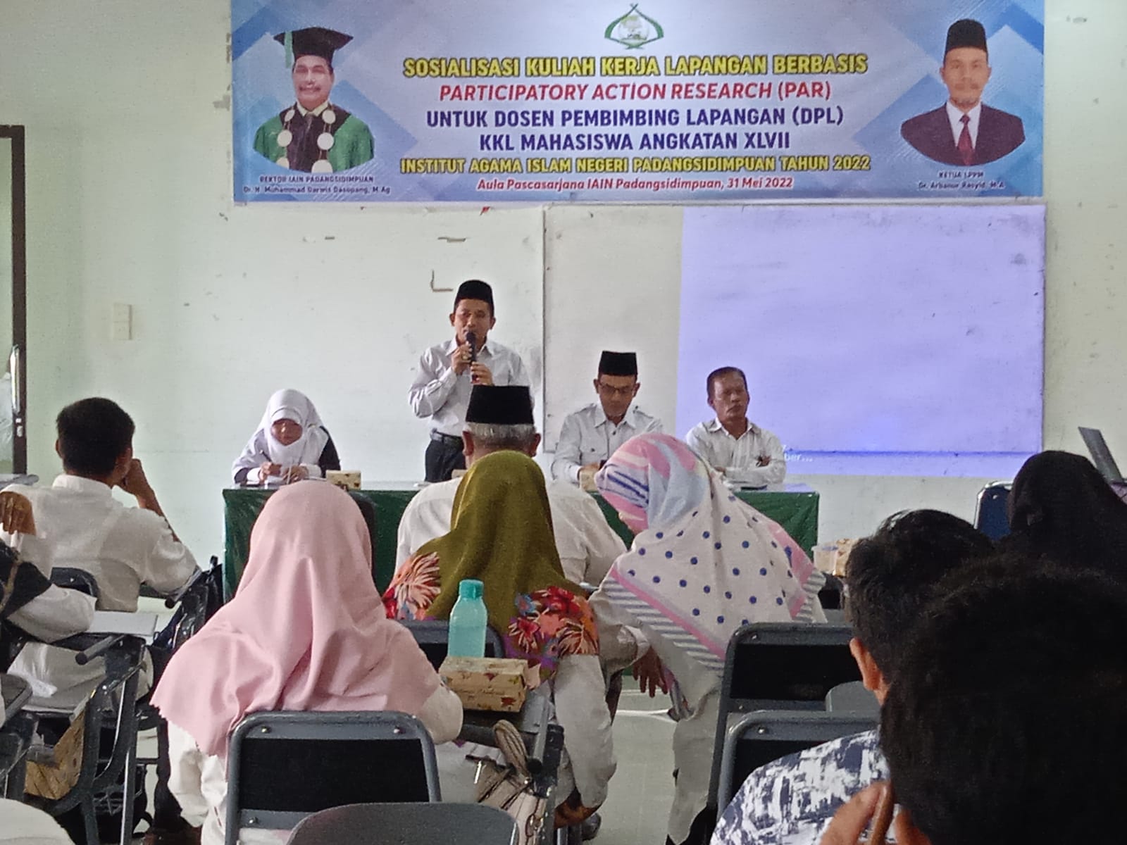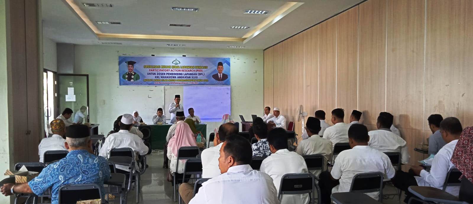 Rabu (01/06/2022); Lembaga Penelitian dan Pengabdian kepada Masyarakat (LPPM) IAIN Padangsidimpuan menggelar Sosialisasi Kuliah Kerja Lapangan (KKL) berbasis Participatory Action Research (PAR) untuk para Dosen Pembimbing Lapangan (DPL) Angkatan XLVII diikuti oleh 50 orang Dosen Pembimbing Lapangan, kemarin (31/05) di Aula Fakultas Dakwah dan Ilmu Komunikasi IAIN Padangsidimpuan.