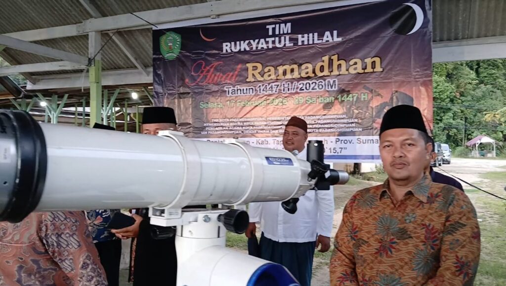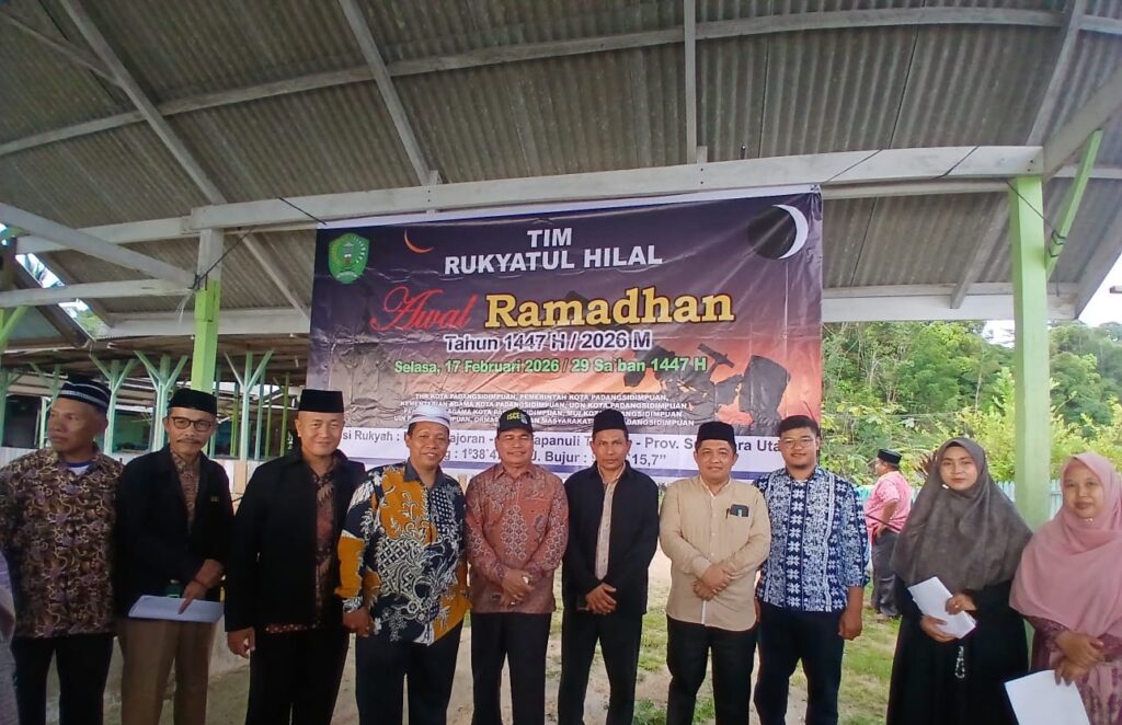 Sibolga – 17 Februari 202. Kolaborasi UIN Syahada Padangsidimpuan dalam Tim Hisab Rukyat Kantor Kementerian Agama Kota Padangsidimpuan yang melaksanakan rukyat hilal di Pantai Hajoran, Kabupaten Tapanuli Tengah, Sumatera Utara, menyatakan hasil pemantauan hilal awal Ramadhan 1447 Hijriah/2026 Masehi tidak memenuhi kriteria visibilitas. Kepala Kantor Kementerian Agama Kota Padangsidimpuan, Dr. H. Erwin Kelana Nasution, MA, menyampaikan langsung hasil tersebut usai pelaksanaan rukyat pada Selasa (17/2/2026).