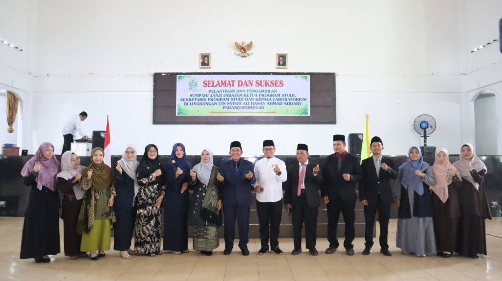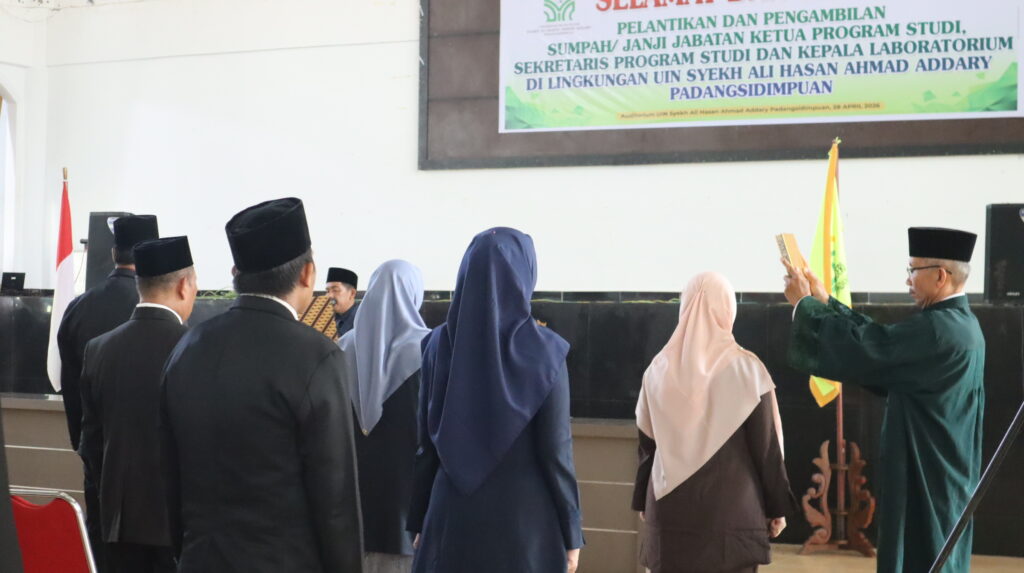 Padangsidimpuan, 28 April 2026 — Rektor Universitas Islam Negeri (UIN) Syekh Ali Hasan Ahmad Addary Padangsidimpuan, Prof. Dr. H. Sumper Mulia Harahap, M.Ag., resmi melantik dan mengambil sumpah/janji jabatan Ketua Program Studi, Sekretaris Program Studi, dan Kepala Laboratorium di lingkungan universitas, bertempat di Auditorium UIN Syekh Ali Hasan Ahmad Addary Padangsidimpuan, Selasa (28/4/2026).