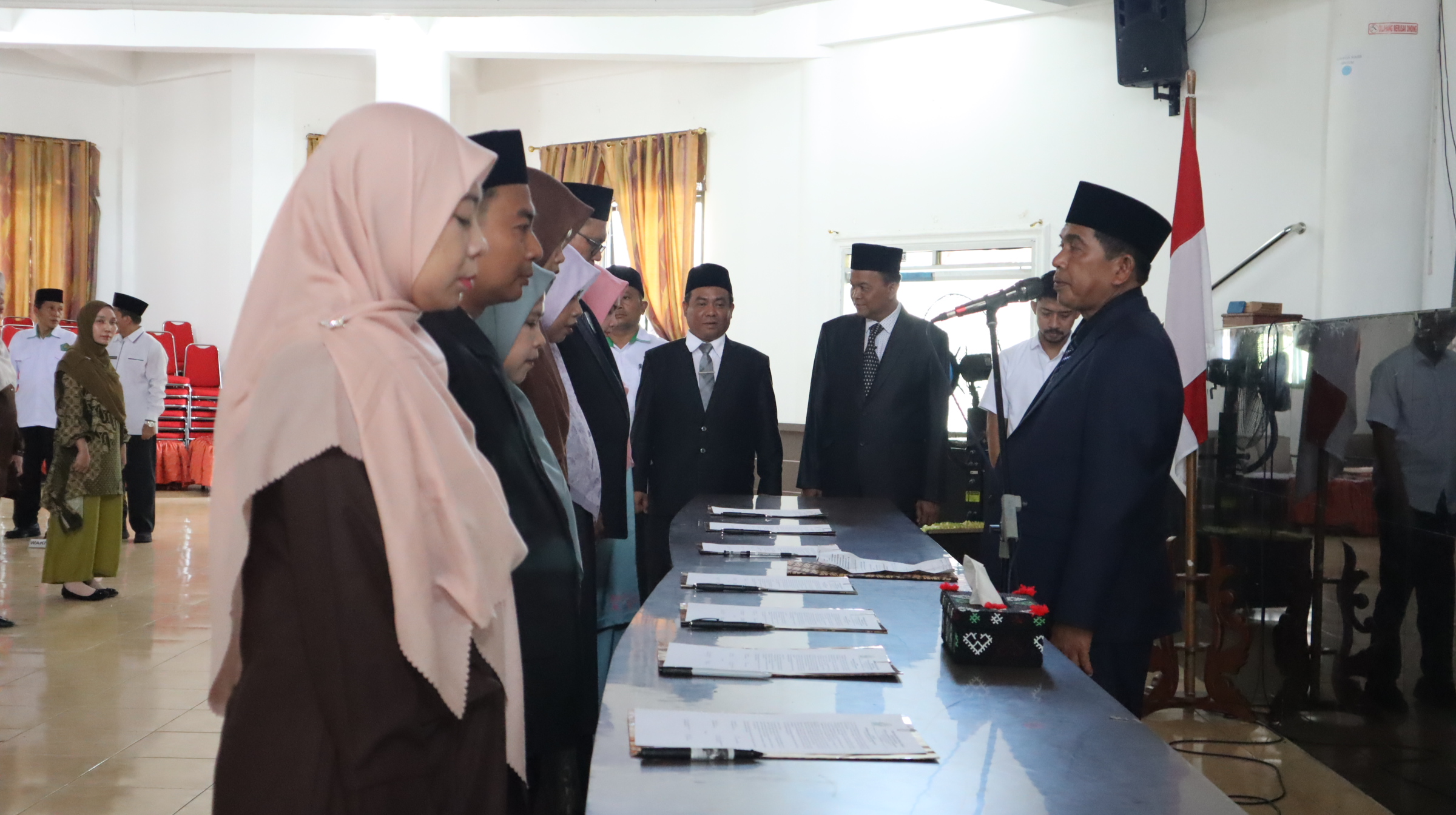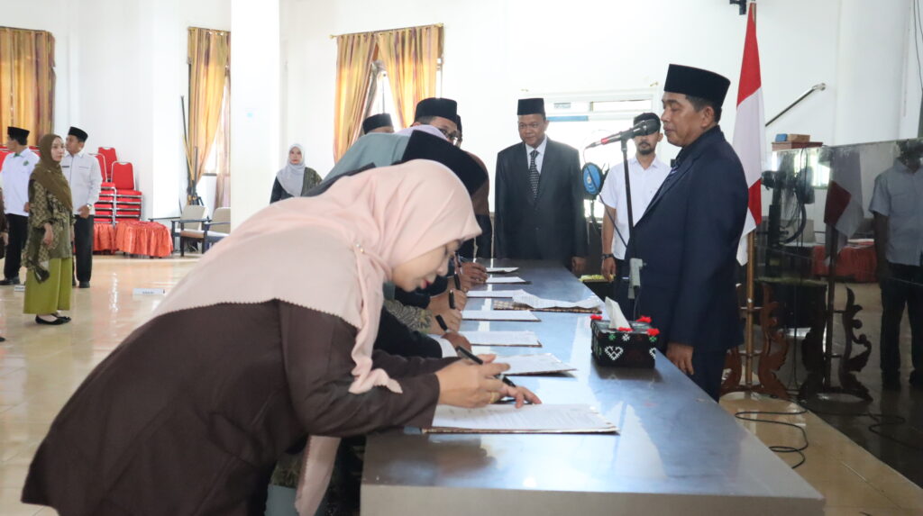 Prosesi pelantikan berlangsung khidmat dengan diawali pembacaan surat keputusan, pengambilan sumpah/janji jabatan, penandatanganan berita acara, serta penyampaian ucapan selamat kepada pejabat yang dilantik untuk masa jabatan 2026 sampai dengan 2030.