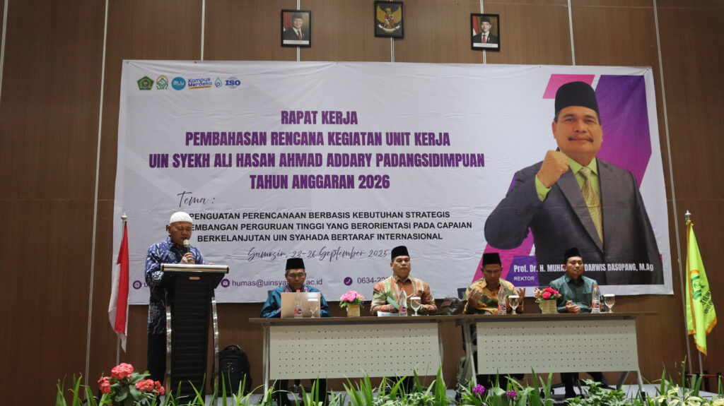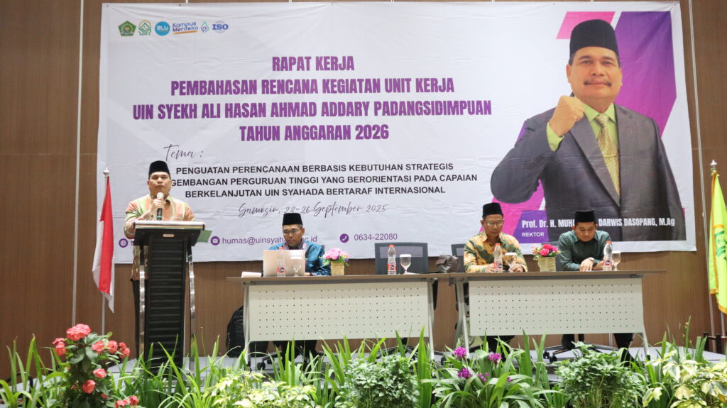 Samosir – Universitas Islam Negeri (UIN) Syekh Ali Hasan Ahmad Addary Padangsidimpuan menyelenggarakan Rapat Kerja Pembahasan Rencana Kegiatan Unit Kerja Tahun 2026 pada 23–26 September 2025 di Labersa Hotel and Convention Center Kabupaten Samosir, Sumatera Utara. Dengan mengusung tema “Penguatan Perencanaan Berbasis Kebutuhan Strategis Pengembangan Perguruan Tinggi yang Berorientasi pada Capaian Berkelanjutan UIN Syahada Bertaraf Internasional”, kegiatan ini menjadi langkah penting dalam merumuskan arah kebijakan strategis universitas untuk menghadapi tantangan pendidikan tinggi ke depan.