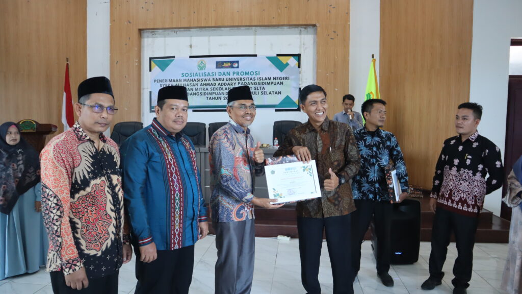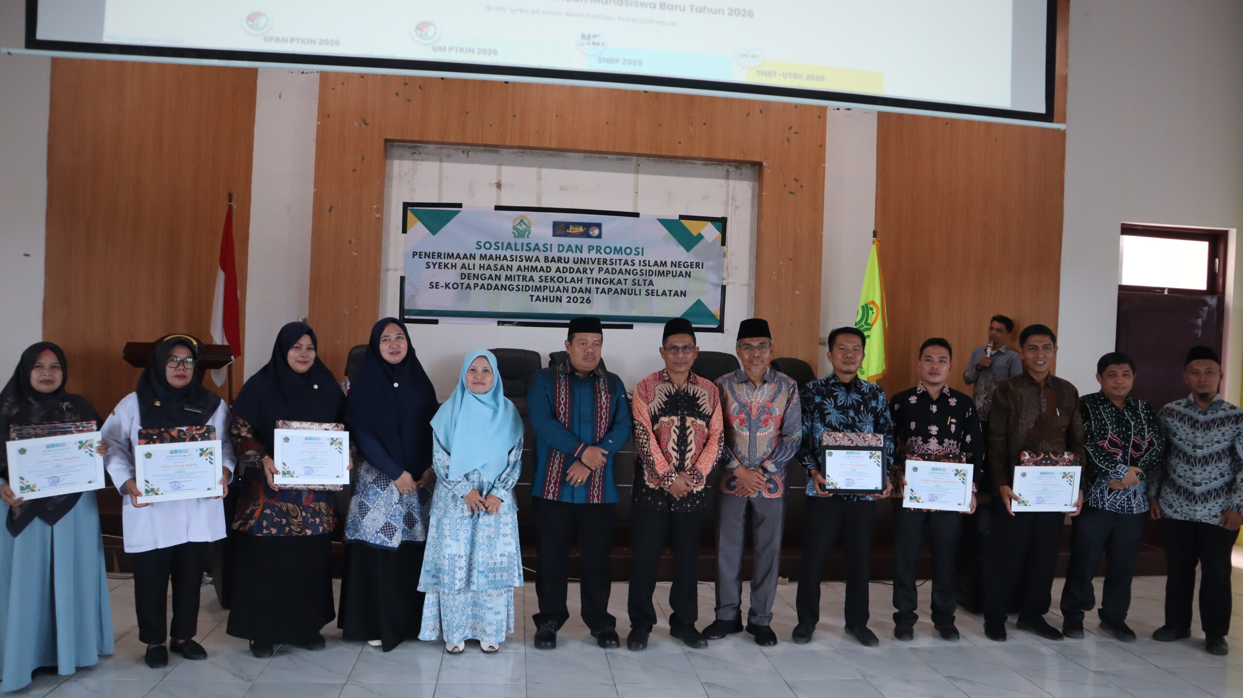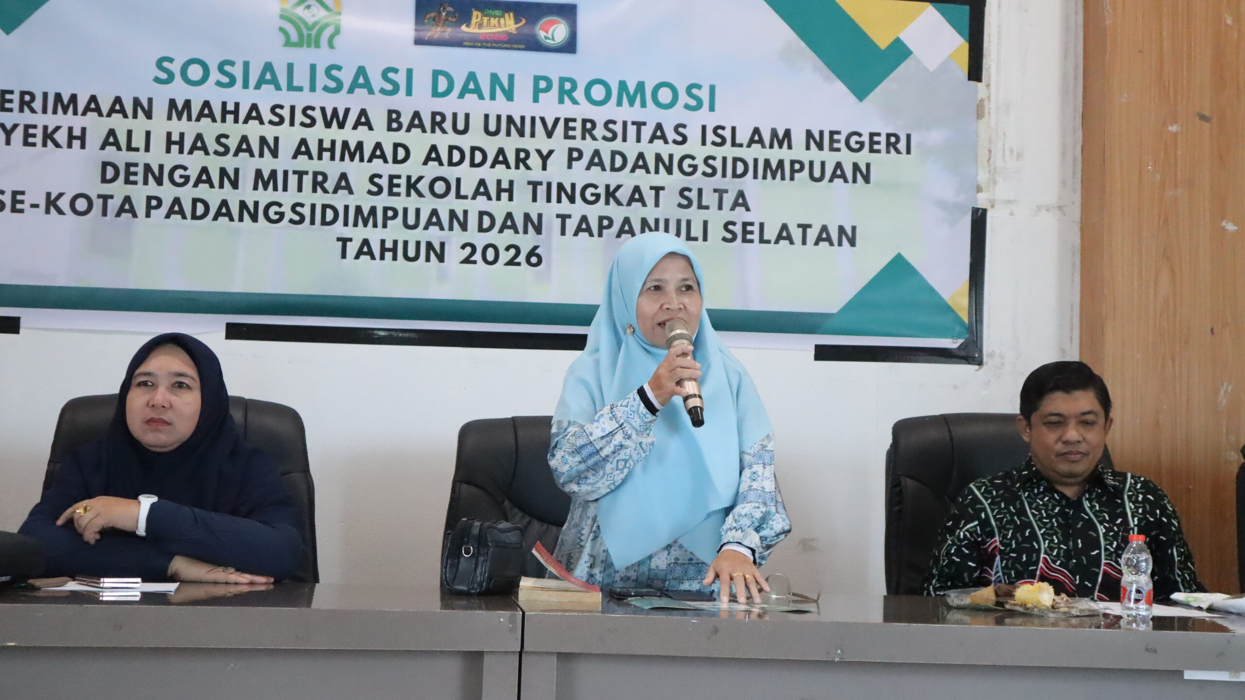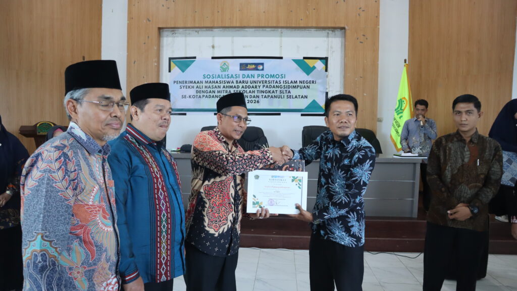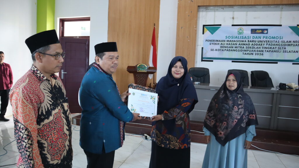 Padangsidimpuan, 04/02/2026 — Universitas Islam Negeri (UIN) Syekh Ali Hasan Ahmad Addary Padangsidimpuan (UIN Syahada) gelar kegiatan Sosialisasi dan Promosi Penerimaan Mahasiswa Baru (PMB) Tahun 2026 bersama mitra sekolah tingkat SLTA se-Kota Padangsidimpuan dan Kabupaten Tapanuli Selatan. Kegiatan ini berlangsung di Gedung Aula Terpadu UIN Syahada Padangsidimpuan, Rabu (04/02/2026).