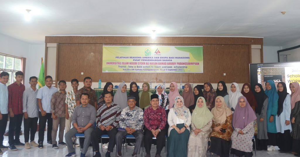 Kamis (15/09/2022); Unit Pelaksana Teknis Pusat Pengembangan Bahasa (UPT.P2B) Universitas Islam Negeri Syekh Ali Hasan Ahmad Addary Padangsidimpuan, selama 3 hari kedepan (15-17 September) menggelar Workshop meraih Beasiswa Amerika dan Eropa bagi mahasiswa UIN Syahada Padangsidimpuan. Acara ini dibuka secara resmi dan langsung oleh Rektor UIN Syahada Padangsidimpuan, Dr. H. Muhammad Darwis Dasopang, M. Ag di Aula Rektorat Universitas Islam Negeri Syekh Ali Hasan Ahmad Addary Padangsidimpuan, Sumatera Utara.